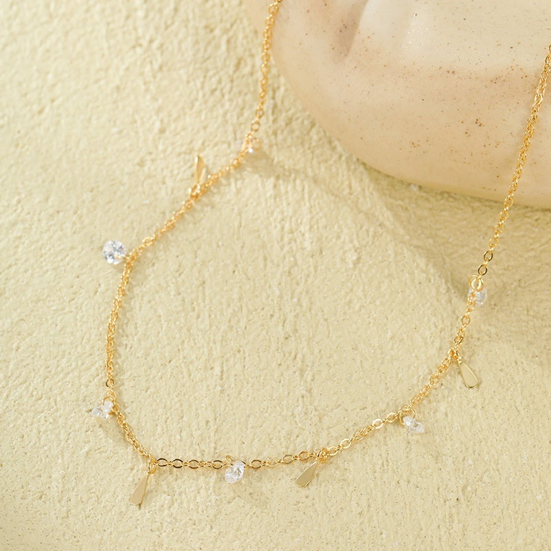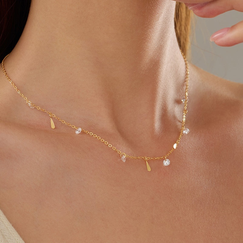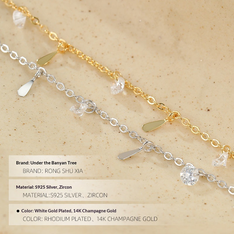 Banyan Tree S925 Silver Plated Gold Color Waterdrop Zircon Tassel Necklace